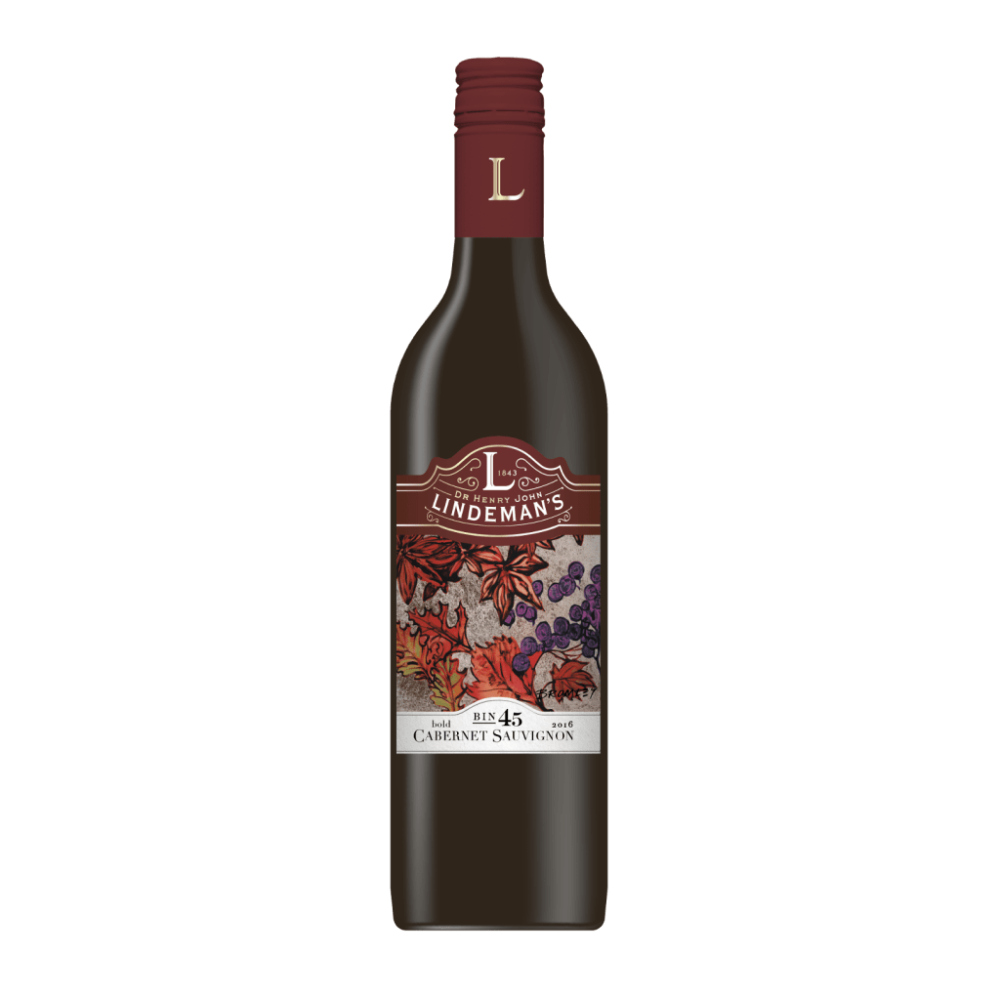Lindeman’s Bin 45 Cabernet Sauvignon features aromas of dark and red berry fruits, with hints of cedar oak, while the medium to full bodied palate exudes plum and berry flavors supported within a soft tannin structure.